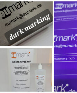 El electrolito M21 de Eumark destaca como la mejor opción para conseguir marcas notables y constantes en múltiples aplicaciones. Con sus excelentes propiedades humectantes sobre superficies de fieltro, el M21 garantiza un marcado uniforme y preciso en todo momento. Para mejorar su ya impresionante rendimiento, aplicar una fina capa de aceite con un paño después de marcar da como resultado marcas aún más excepcionales. La M21 es adecuada para una amplia gama de materiales, como acero inoxidable, acero y superficies niqueladas. Con M21, puedes conseguir sin esfuerzo marcas excepcionales que dejen una impresión duradera.